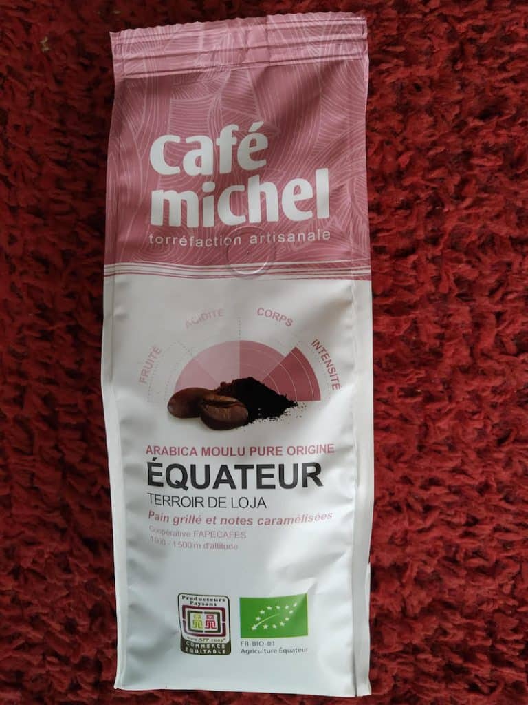 Issu de l’agriculture biologique et du commerce équitable, l’arabica moulu pure origine Équateur provient du terroir de Loja. Réputé pour son intensité, il possède toutes les caractéristiques d’un café d’altitude. Café Michel promet une dégustation marquée par des notes gourmandes de pain grillé relevées d’une pointe de caramel. J’ai, moi même, testé ce café bio et je m’apprête à vous faire part des mes impressions gustatives.